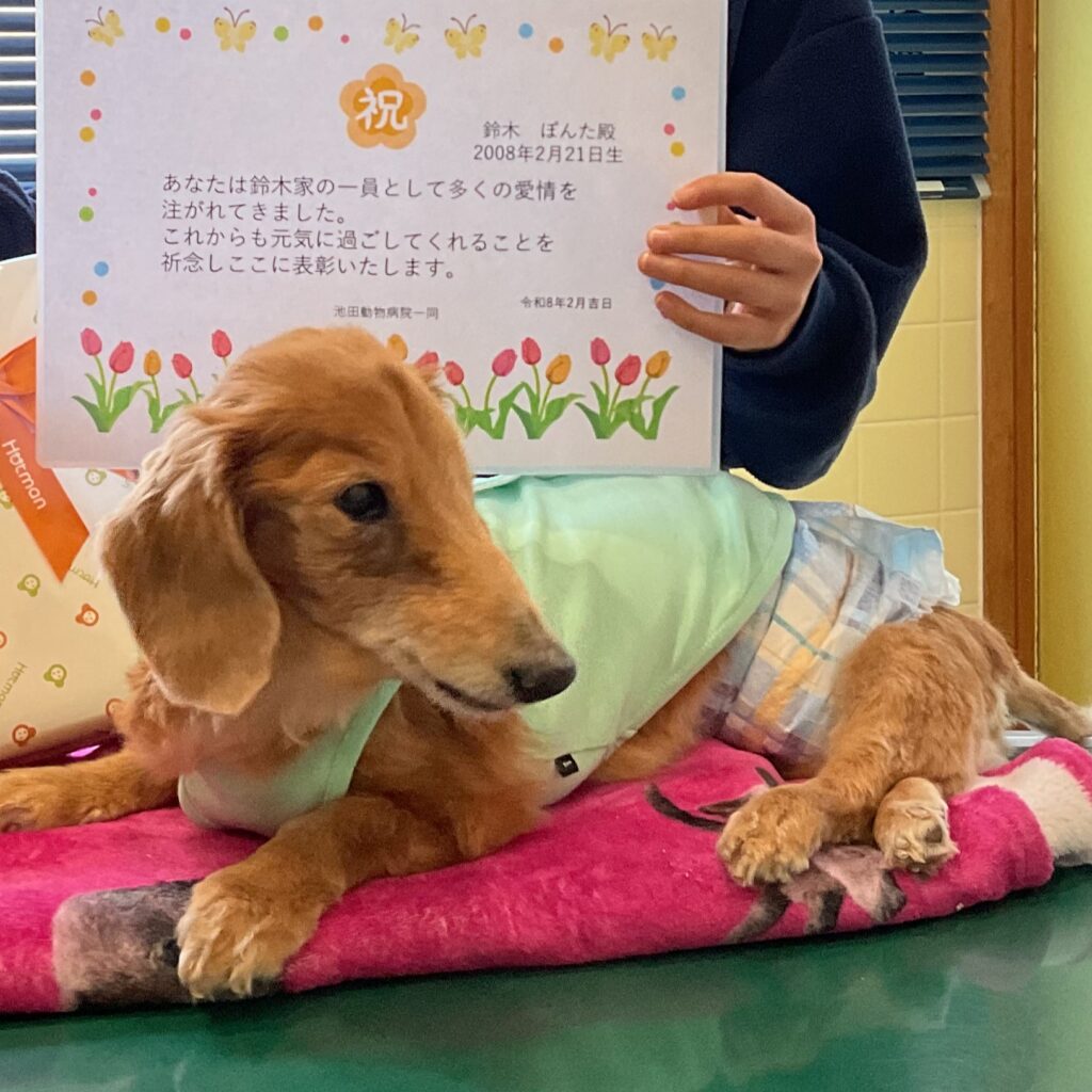 シニア期は体調の変化も現れやすい時期ですが、その子らしい毎日を安心して過ごせるよう、当院も引き続きお手伝いさせていただきます。